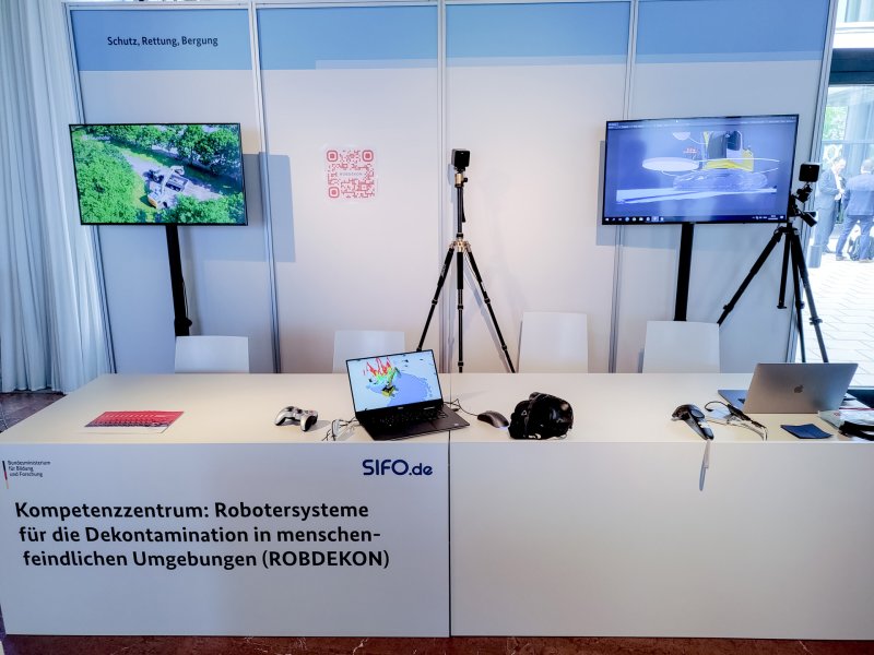ROBDEKON ist mit einem Stand auf dem BMBF-Innovationsforum »Zivile Sicherheit« 2022 vertreten und diskutiert mit Experten neuartige Konzepte zur roboterbasierten Dekontamination.