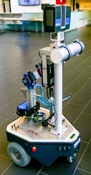 The GammaBot robot from Karlsruhe University of Applied Sciences can create precise 3D models of buildings using a laser scanner. It also determines the local dose rate for the dismantling of nuclear facilities.