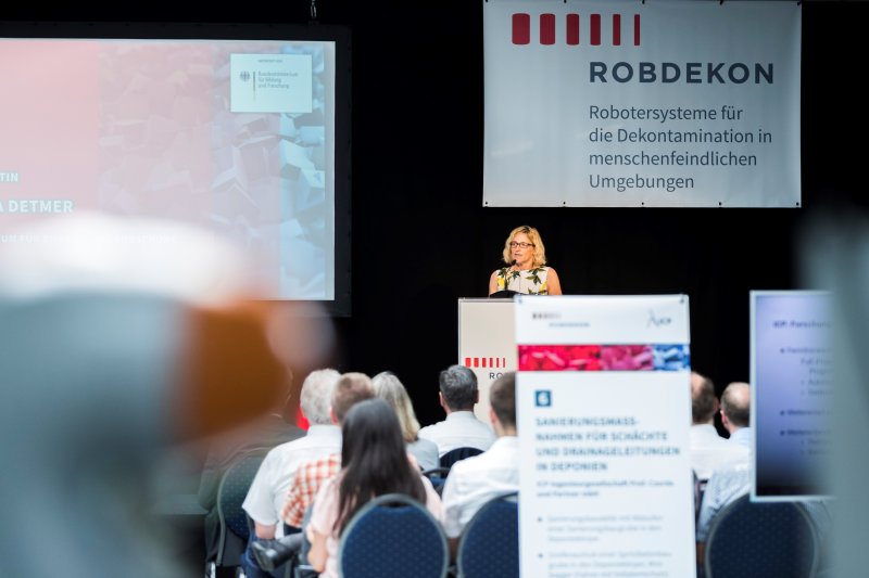 »ROBDEKON brings together the key experts in decontamination robotics and creates the basis for sustainable cooperation for the transfer of innovations in practice,« said Dr. Andrea Detmer, Head of the Department of Civil Safety Research at the BMBF, during the event, which also saw the ribbon-cutting ceremony of a new laboratory hall for ROBDEKON. »The competence center will thus become the crystallization nucleus for developments that use artificial intelligence to generate very tangible added value for people who are exposed to potential health hazards on a daily basis, e.g., in the remediation of landfills and contaminated sites. The aim is to relieve them of stressful work and thus minimize risks to life and limb«.
